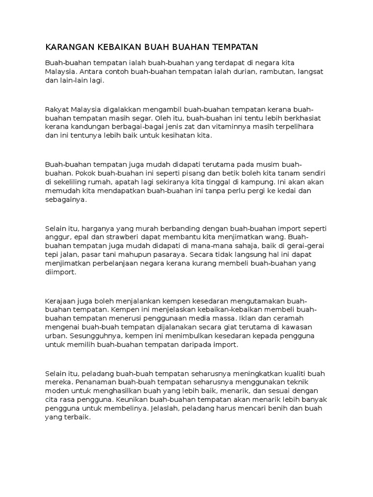 Buah Buahan Tempatan Contoh Karangan Pdf